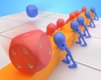 İtme yarışı oyunu ekranının ortasında yatay şekilde bulunan bir tahta ve tahtanın her iki tarafında da birbirlerini platformdan aşağıya düşürmeye çalışan takımlar bulunuyor. Takımlar mavi ve kırmızı renklidir. Mavi renkli takımı siz kontrol ediyorsunuz. Kırmızı renkli takım ise rakip takımı temsil ediyor. Parkurun her iki uç tarafında da zar fırlatma mekanizması bulunuyor. Fare yada parmağınızı ekran üzerinde sürükleyerek zarı platforma doğru fırlatıyorsunuz. Zarın üst tarafındaki rakam kadar yeni asker çıkıyor ve takım arkadaşlarının yanına giderek onlara yardım ediyor. Eğer zar rakip tarafa düşerse çıkan adamlar rakip takımın adamlarını öldürerek yok ediyor. Böylece rakip takımın adam sayısı azalmış oluyor. Parkurda delikler, X2 yazan dairesel alanlar ve sabit veya hareketli bariyerler bulunuyor. Her iki takımında adamları boşluklara denk gelirse aşağıya düşerek yok oluyorlar. Eğer attığınız zar boşluklardan aşağıya düşerse adam çıkartamıyorsunuz. Bu durumda rakibinize karşı dezanavtaja sahip oluyorsunuz. Zar X2 yazan yere denk gelirse çıkan adam sayısı zardaki rakamın iki katı oluyor. Diğer dairesel bölgeye denk gelirse de çıkan adamların bedeni daha büyük oluyor. İtme yarışı oyunu oynarken tahtayı rakip tarafın en uç noktasına kadar götürüp rakip adamları aşağıya düşürürseniz bölümü tamamlıyorsunuz. Bölümleri tamamladıkça puan kazanıyorsunuz. Kazandığınız puanları kullanarak adamlarınızın güçlerini ve başlangıç sayılarını arttırabiliyorsunuz.
